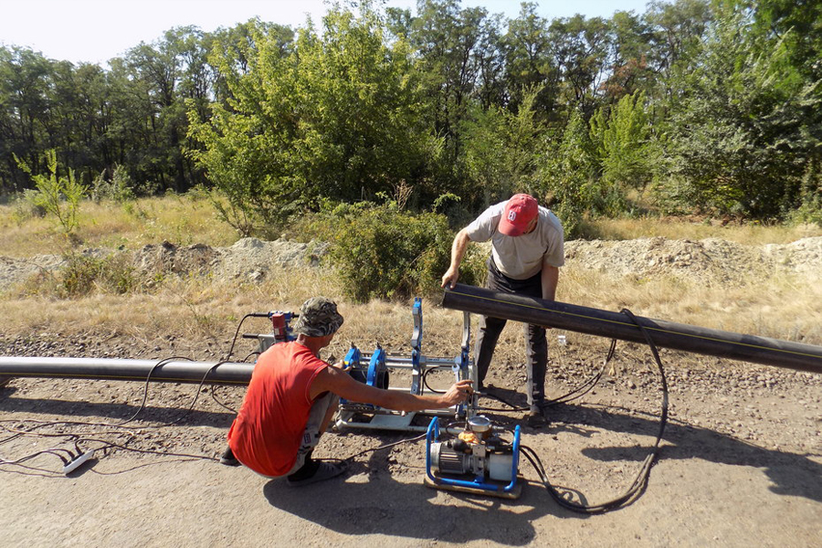 Присоединение к распределительному газопроводу при помощи арматуры для врезки под давлением. Участок от распределительного газопровода до участка собственника.